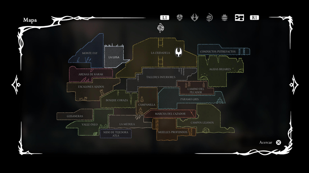 Olvidé mencionar en mi última crónica que también conseguí el ...Blasón de Chamana ascendiendo por una grieta secreta de la Capilla, así que ya tengo cinco (aunque sólo uso el de golpes rápidos y el que nos da extra de seda tras curarnos).