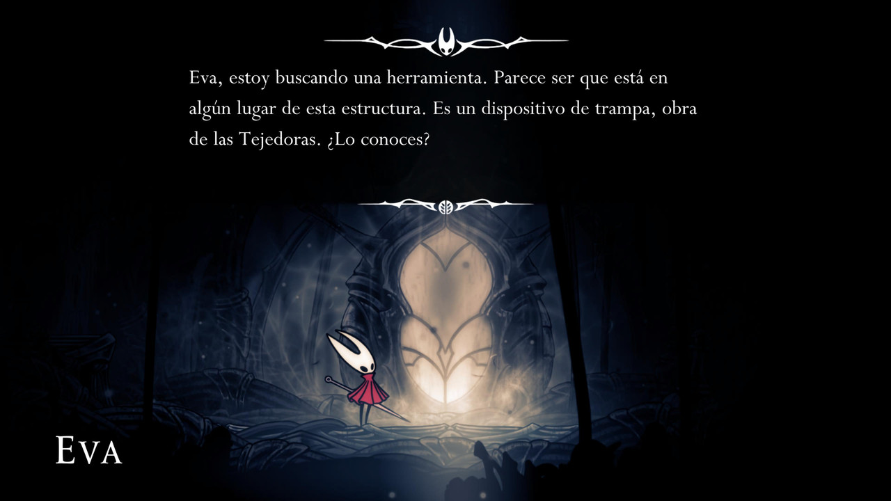 Completadas las sidequests ...'Gran sabor de Telalejana' y 'Festín para la prole', tengo un "problema" con 'Seda y Alma': según Eva el artilugio para fabricar la poderosa trampa se encuentra en la zona musgosa del Nido de Tejedoras, pero no encuentro nada allí.